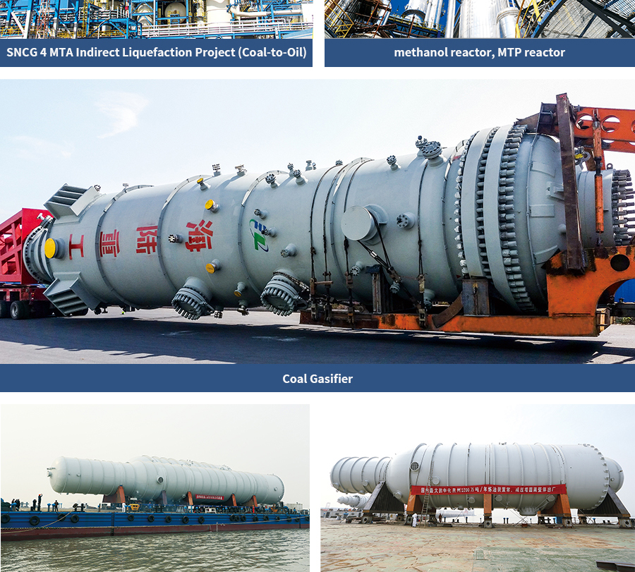 HLHI entered into the design and manufacturing of the key equipment: pulverized dry coal pressurized gasifiers, four desorption towers and four flash towers for Rectisol process, eight slag wax vacuum tanks and eight slag wax storage tanks for oil processing process, and other large oversized equipment, such as the first localization manufacturing task to bridge the gap; HLHI has made breakthroughs in a series of key technologies of large oversized pressure vessels, and held two authorized invention patents and three utility model patents.